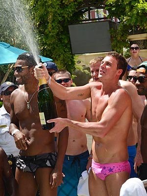 Ryan Lochte has been winning at everything since the Olympics....from getting gold plated razors to possibly becoming the next 'Bachelor' on ABC's hit TV show, and now late night pool races against Prince Harry. According to reports, Lochte and Prince Harry were in the pool at 3am at the Wynn Hotel's XS Nightclub pool and proceeded to race in front of a crowd of about 5,000 people....can you guess who won? Locte's legacy is slowly growing. To see the video of the race, click here. Peep other photos of Lochte and his Vegas adventures below......